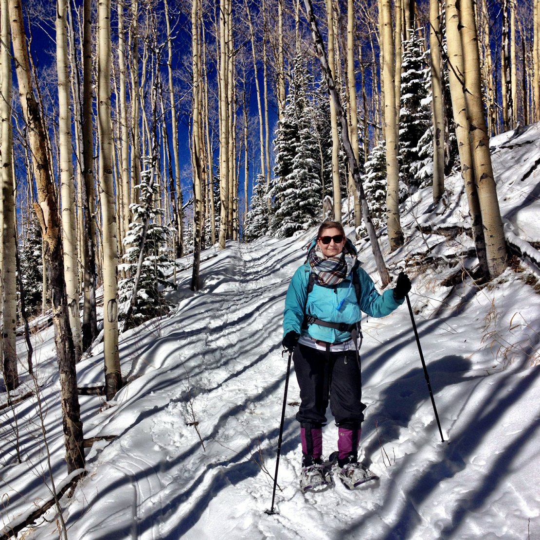 Don’t let the pretty pictures fool you… 6.2 miles in snow shoes + a 2,000 foot elevation gain + a massive backpack + absolutely no training [save walking and eating our way through Europe at sea level] = the very end of Elizabeth’s physical, mental, and psychological limits. Smiling and taking pictures was way easier on the way down.