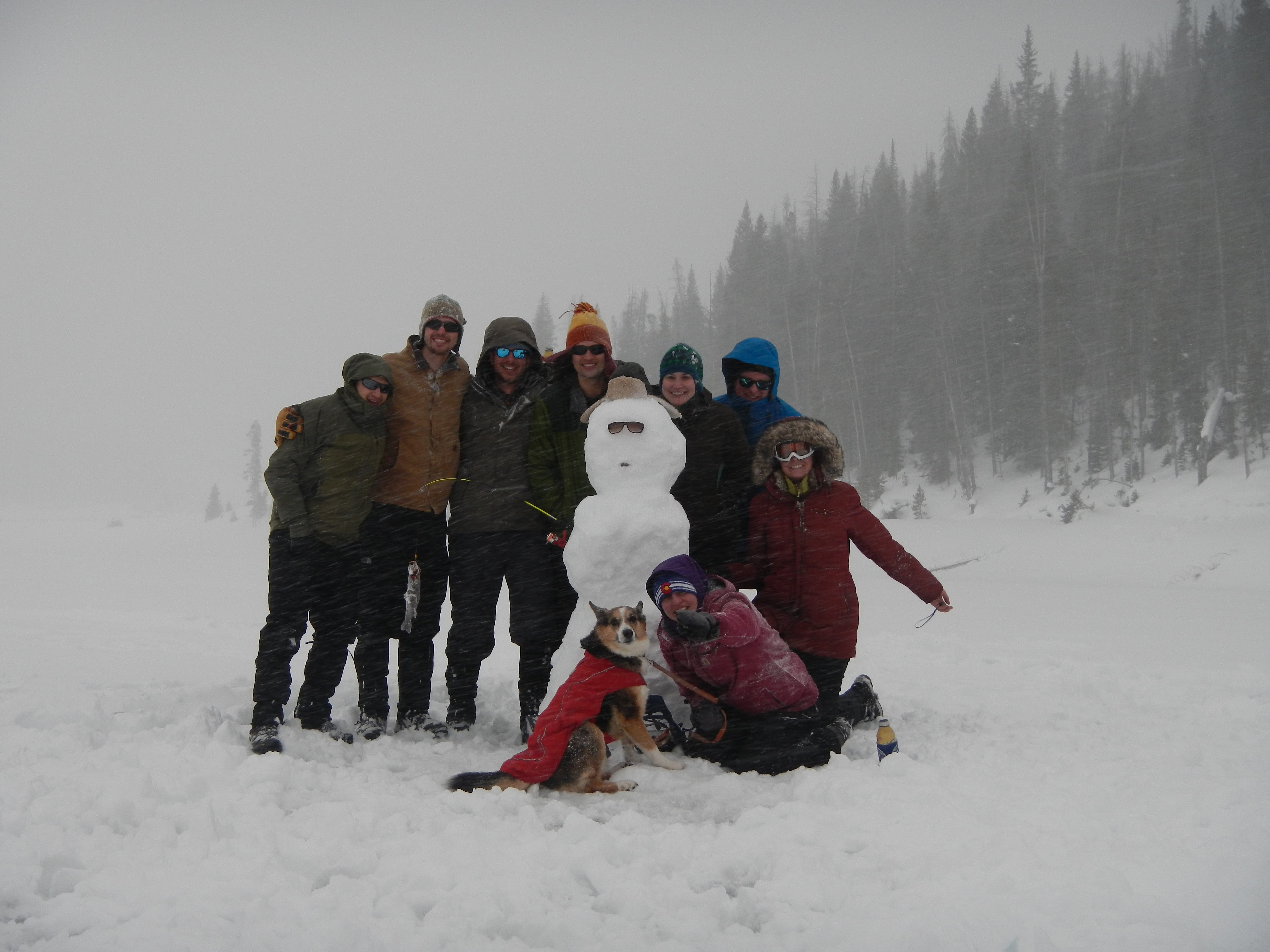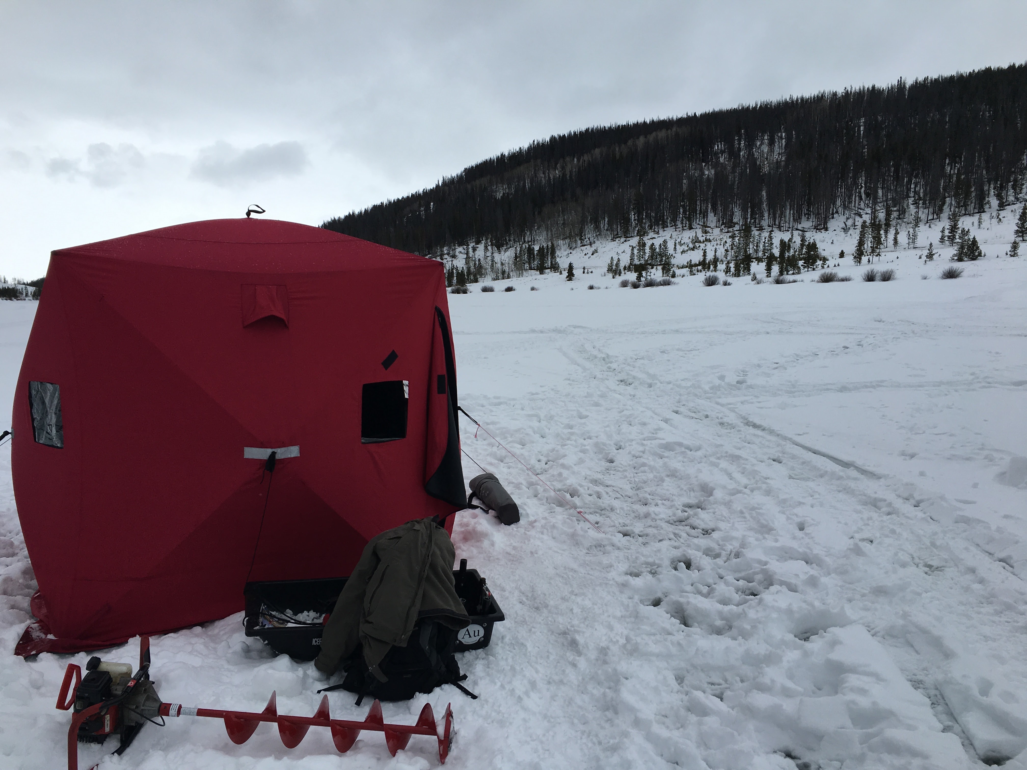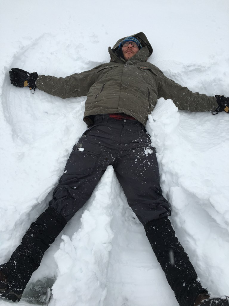 Then there was the actual act of ice fishing: stepping out onto the frozen lake for the first time was an at once electrifying and terrifying moment. But with the snowmobiles riding all around and a two-foot layer of ice between the water and us, we soon found there was nothing to fear. In fact, we found that there was everything to delight in: the warmth of the shanty sheltering us from the wind, dogs romping around excitedly in the snow, the thrill of yelling “FISH ON!” as soon as we landed a trout, the joyful power of drilling the auger through the ice, and the oncoming snowfall that lent itself to all sorts of snowball fights, snowshoeing treks, and snowmen building.