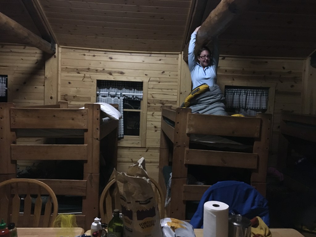 We’re not really sure how best to sum up the entire experience, because it was so much more fun and memorable than any of us thought possible. Our cabin was a cozy, albeit noisy, home base where a series of wooden bunk beds and central “mess” table made it feel as if we were returning to the summer camps of our youth. And while we didn’t have any running water or centralized heat, the cabin was perched on the shore of North Michigan Reservoir in the middle of State Forest State Park’s sweeping tree-covered peaks and trails, a view that none of us could really quite grasp in its beauty.