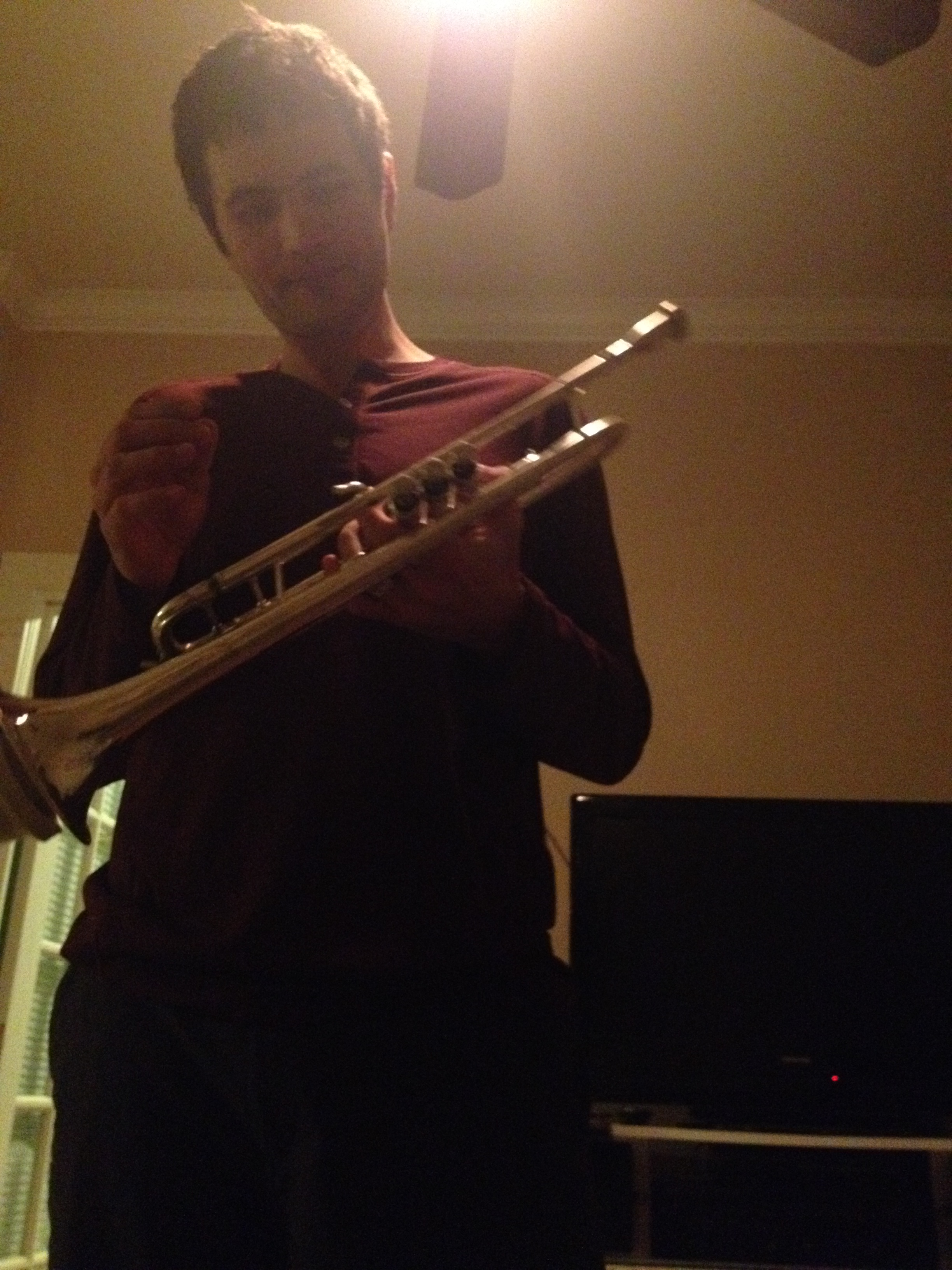 Jason practicing his trumpet at home