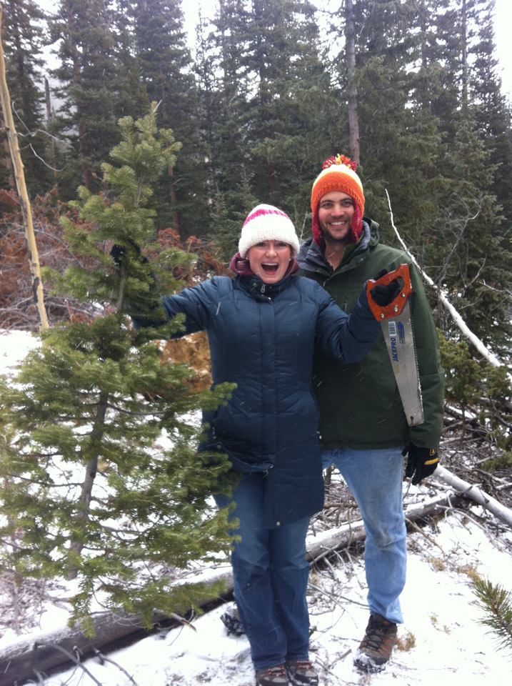Our very first Colorado Christmas tree [2012]. Cut down with our friends Pete Garatoni and Becca Campbell, the latter of whom had conspired with Jason to surprise me with a visit!