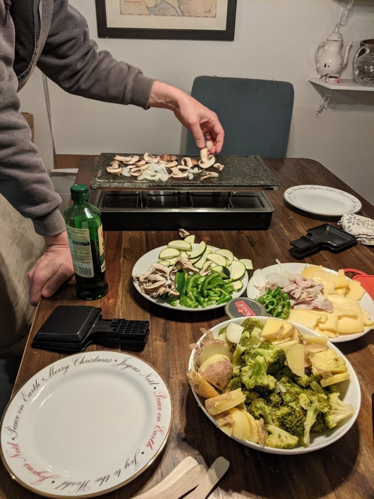 Jason received a raclette grill for Christmas last year (2019) after enjoying so many iterations of it during our trips to Belgium. What is raclette you ask? Raclette is both a type of cheese and a cooking apparatus that resembles a small hibachi grill. It is, above all, a communal dining experience meant to be enjoyed with others.