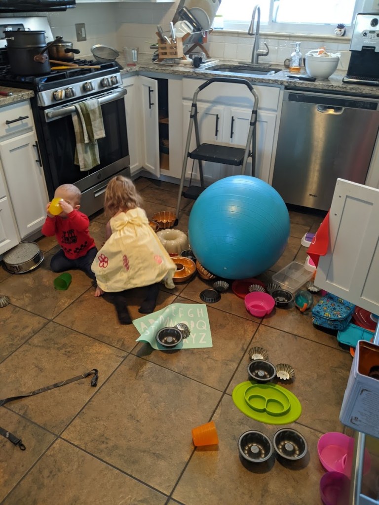 Meanwhile, Arleigh is attempting to open the toilet lid and put his hand in the poop water. Elizabeth is simultaneously encouraging Lilia in her independence while also ensuring her butt is properly wiped and repeatedly deflecting Arleigh from the toilet bowl without full on pushing him to the tile floor.