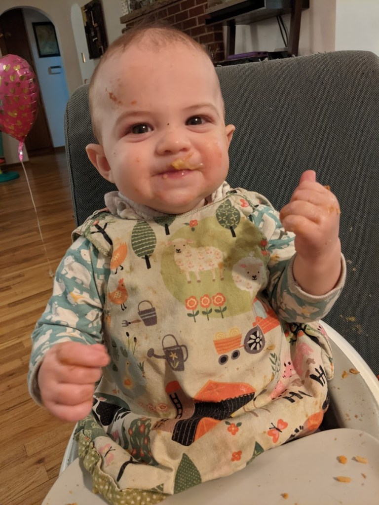 Lilia devoured her mashed potatoes and is now only insisting on chugging juice and water. She won’t eat the rest of her food unless Elizabeth puts it on her fork for her.